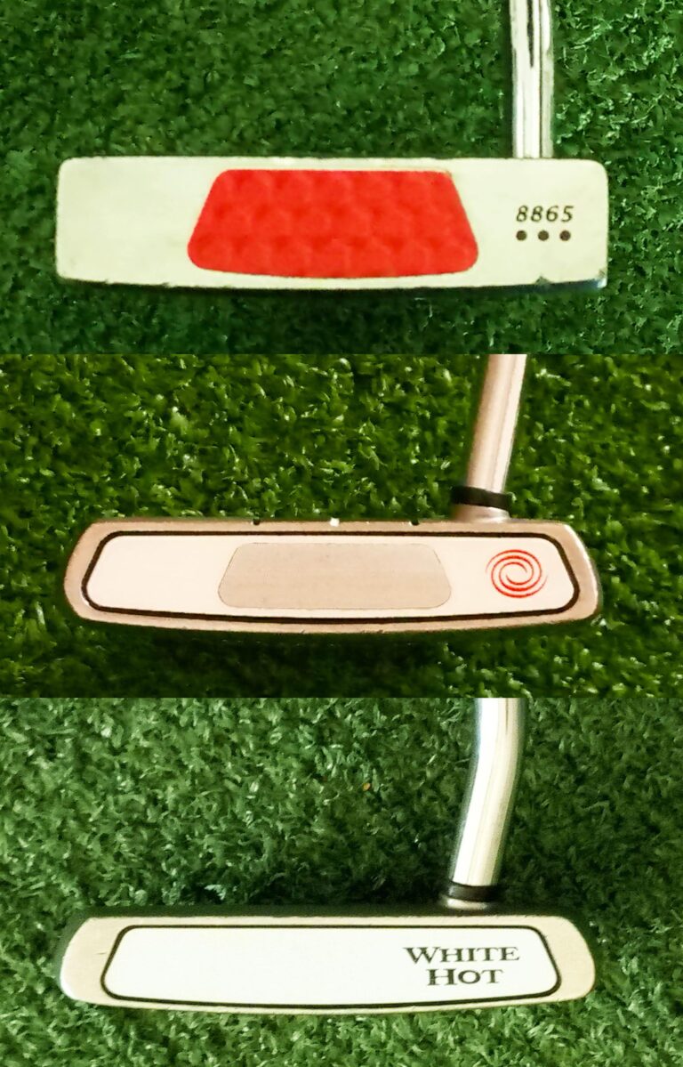 White Hot Odyssey 5 32″ putter with white polymer face insert and original grip and head cover.